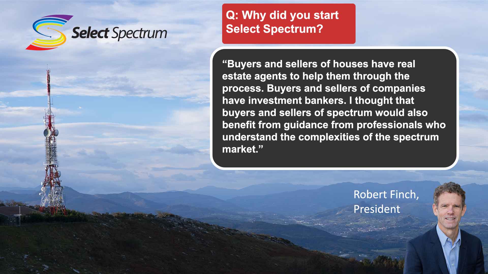 At Select Spectrum, our team’s goal is to assist your organization in obtaining/marketing, utilizing, and maximizing the value of wireless spectrum assets. The company actively represents clients holding licenses across 22 different FCC spectrum bands, including narrowband, broadband and millimeter wave frequencies, ranging from 150 MHz to 40 GHz. Select Spectrum is an industry leader, having facilitated over 300 FCC license transactions in the secondary spectrum marketplace. Select Spectrum has also provided spectrum consulting services to major utilities, wireless operators and financial institutions that have invested hundreds of millions of dollars in spectrum-oriented ventures. Below you will find links to learn more about the different services the company provides.
